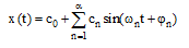 در این رابطه، (x(t نگاشت تاریخچه زمانی (جا به جایی، سرعت یا شتاب)، ωn بسامد n ام، an و bn دامنههای توابع سینوسی و کسینوسی نظیر بسامد n ام و a0 دامنه نظیر بسامد صفر میباشند.