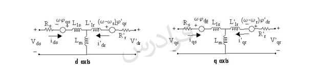 مدل استفاده شده در فوق در محور d-q می باشد. محور d همان محور ماکزیمم شار هست و محور q محور مینیمم شار. محور q و محور d عمود بر هم هستند.